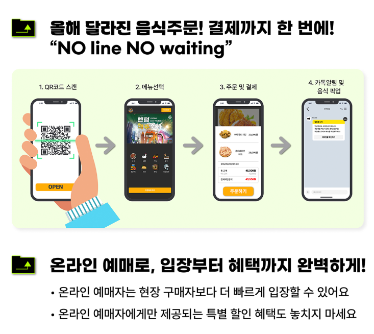 2. 온라인 예매자는 현장 구매자보다 더 빠른 입장이 가능하니 놓치지 마시기 바랍니다.