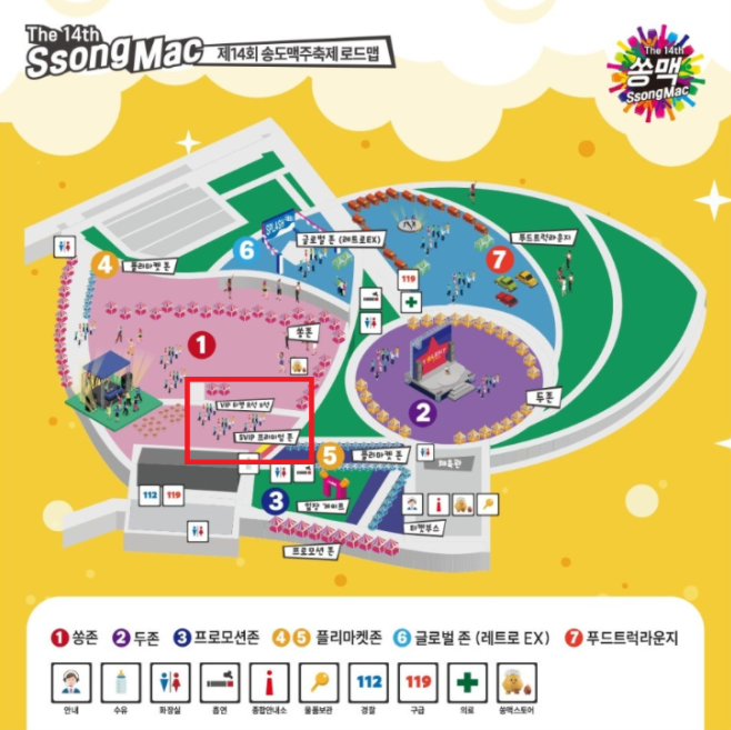 작년에 열렸던 2024 인천 송도 맥주축제 로드맵을 보면 쏭존, 두존, 프로모션존, 플리마켓존, 글로벌존, 푸드트럭 라운지로 나눠져 있었으며, 원하는 자리를 잡은 후 푸드트럭라운지에서 음식과 맥주를 구매 후 쏭존과 두존에서 공연을 관람할 수 있었습니다.